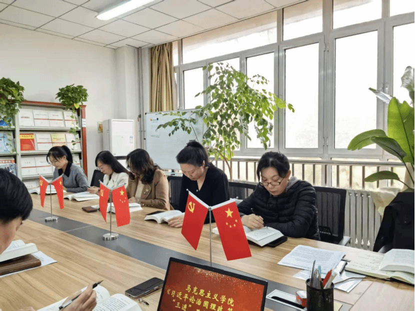 在交流研讨环节,全体教师围绕《习近平论治国理政·第五卷》的内容体系、精神实质以及教学转化路径展开热烈讨论。大家一致认为,学习《习近平论治国理政·第五卷》必须坚持读原著、学原文、悟原理,深刻领悟“两个确立”的决定性意义,增强“四个意识”、坚定“四个自信”、做到“两个维护”,准确把握“两个结合”的根本途径和“六个必须坚持”的世界观和方法论。