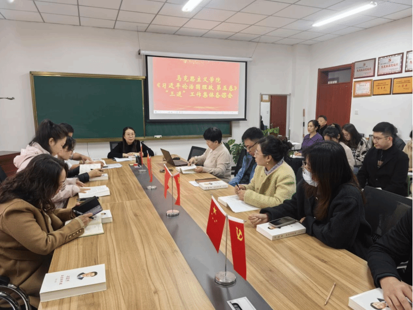 为深入学习贯彻习近平新时代中国特色社会主义思想,切实推动党的创新理论进课堂、进教材、进学生头脑,10月30日,马克思主义学院在学院会议室组织召开《习近平论治国理政·第五卷》集体备课会。学院院长贾启红主持会议,全体马克思主义学院教师参加会议。